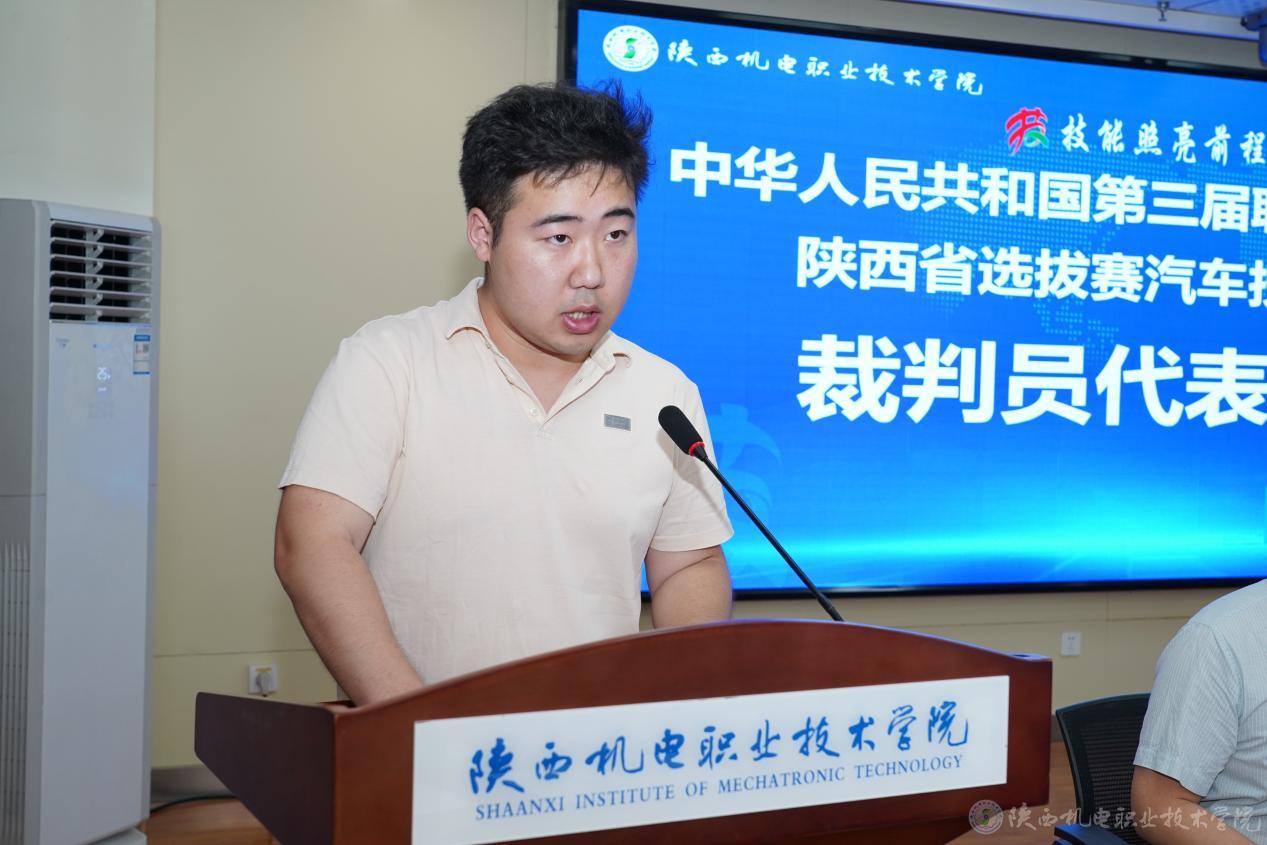 在热烈的掌声中,张克宣布中华人民共和国第三届职业技能大赛陕西省选拔赛“汽车技术赛项”正式开赛。
