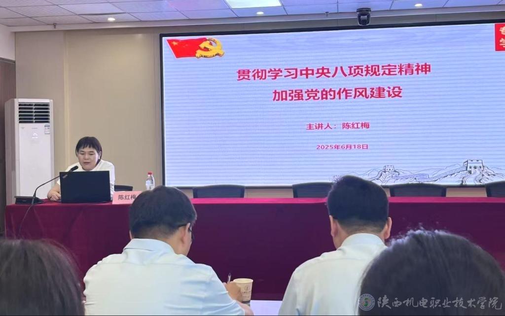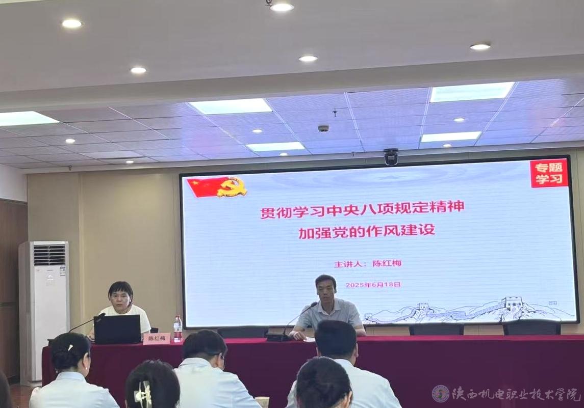 6月18日下午,学校党委副书记、纪委书记陈红梅以《学习贯彻中央八项规定精神学习教育 加强党的作风建设》为题,在宝福路校区汽车机电大楼四楼视频会议室为基础部党支部、数字经管学院党支部、马克思主义学院党支部全体党员讲授专题党课。讲座由校纪委委员、数字经管学院党支部书记孟发军主持。