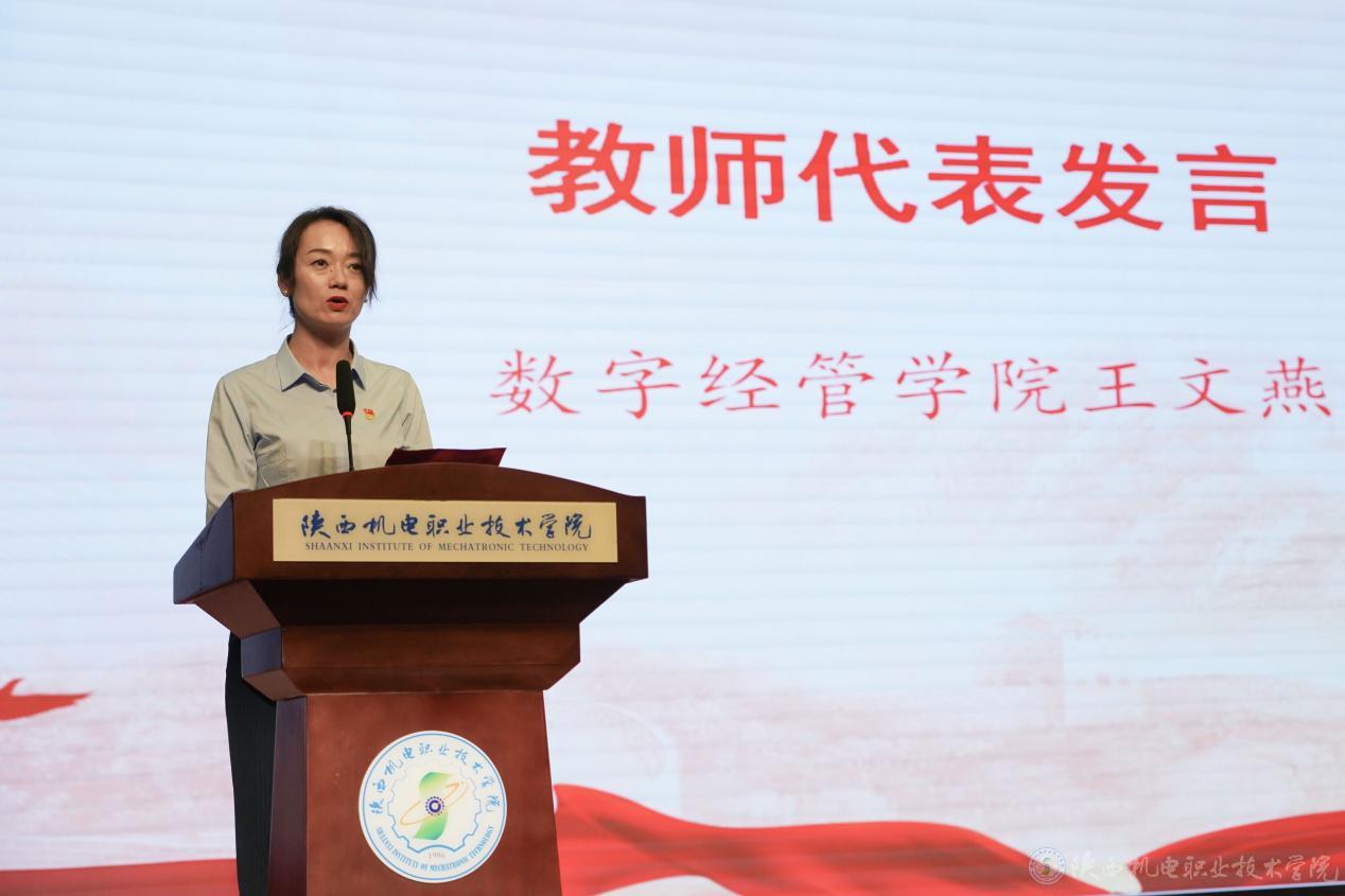 铁道工程学院王晨亮作为学生代表发言,数字经管学院王文燕作为教师代表发言。