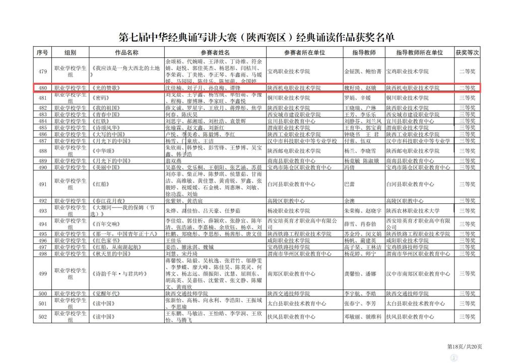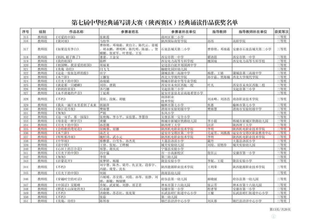 9月11日,陕西省教育厅办公室公布了第七届中华经典诵写讲大赛(陕西赛区)评审结果。买球赛的app官网选送的作品《会唱歌的鸢尾花》(屈婉蓉、屈娜)、《听听那冷雨》(魏籽琦、武小元)荣获经典诵读类教师组三等奖;作品《光的赞歌》(沈佳楠、刘子月、孙良梅、谭锋)、《父母之河》(陈世豪、王静怡)分别获得学生组二等奖和三等奖。作品《杨守鹏印痕》(杨守鹏)荣获师生篆刻类大学生组三等奖。