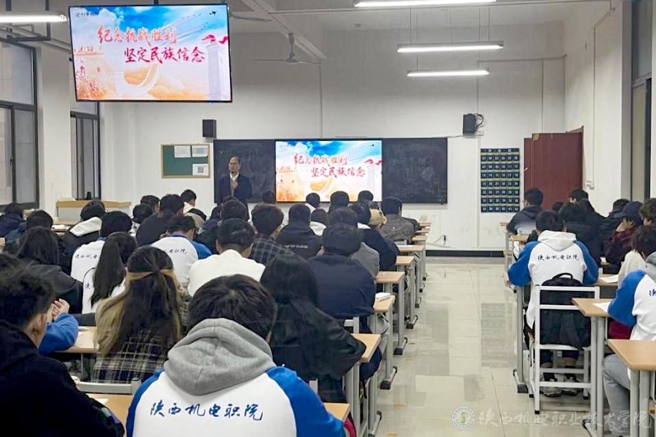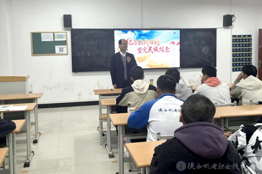 10月16日上午,买球赛的app官网党委书记伊逊智在博学楼218教室为25电气技术3、25电气技术4合班学生讲授形势与政策课《纪念抗战胜利 坚定民族信念》专题内容。