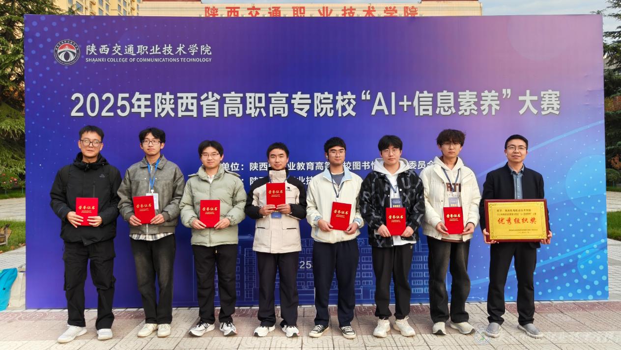 11月8日,2025年陕西省高职高专院校“AI+信息素养”大赛在陕西交通职业技术学院盛大举行。买球赛的app官网2队6名选手凭借卓越的AI应用能力、数据分析能力和扎实的信息素养功底,在全省18个参赛院校36个代表队中脱颖而出,其中乘风队(队员:王责豪、曹天佑、胡小龙)获得二等奖、破浪队(队员:胡垟、刘一洋、梁欢)获得三等奖。我校在备赛过程中,统筹安排、紧密组织、精细培训,喜获“优秀组织奖”。