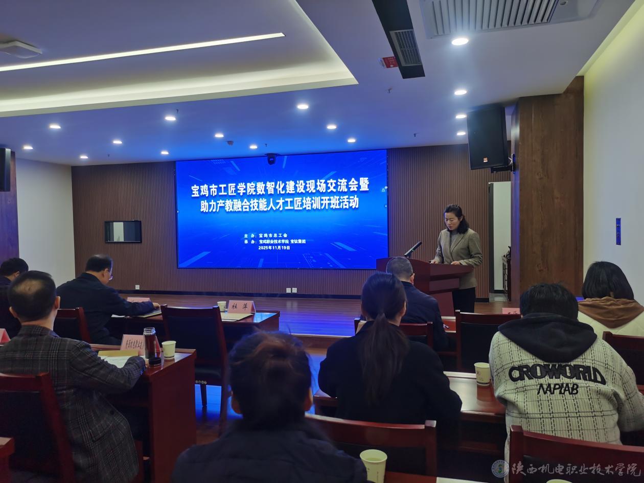 11月19日,宝鸡市总工会举办宝鸡市工匠学院数智化建设现场交流会暨助力产教融合技能人才工匠培训开班活动。学校党委委员、副校长张克带队参加活动并作专题汇报。