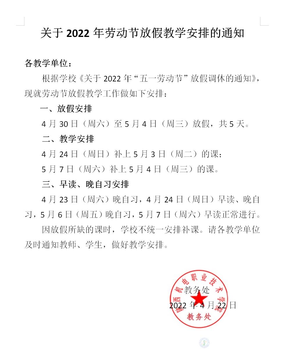关于2022年劳动节放假教学安排的通知
