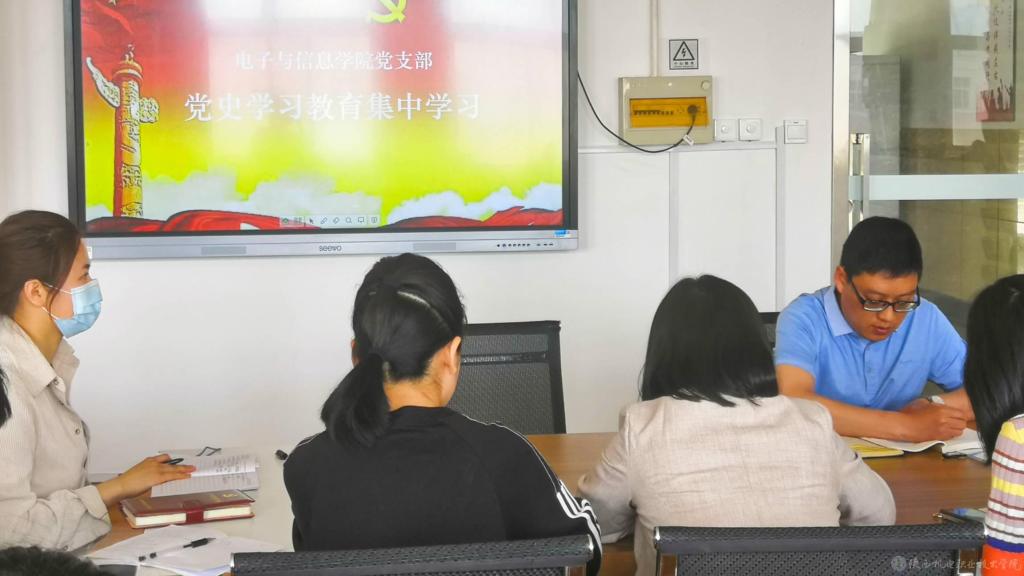 5月18日下午,电子与信息学院党支部在电子信息大楼2205实训室组织开展党史教育集中学习,学习活动由党支部书记高赋主持,党支部副书记、院长姜有奇及支部全体党员参加。