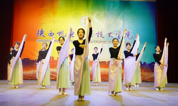 精致的妆容,华丽的服饰展示着青春的活力,一首《雨碎江南》、《送别》展现了学生优美的舞姿。