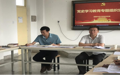 2021年7月5日下午经管与艺术学院党支部在经管建筑楼304教室召开党史学习教育专题组织生活会。支部全体党员参加,党委委员、纪委书记齐晓军到会指导并以普通党员身份参加了本次专题组织生活会。