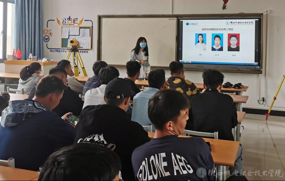 在活动中,由苟强和阎玉菡老师对铁道工程学院历届参加的建筑工程识图等八个陕西省高职院校技能大赛赛项进行了介绍,详细讲解了各个赛项的内容,涉及到的专业知识和能力需求,同时邀请今年参加技能大赛的同学为大家分享了比赛的经验和心得体会,鼓励学弟学妹积极参加比赛,掌握专项技能。