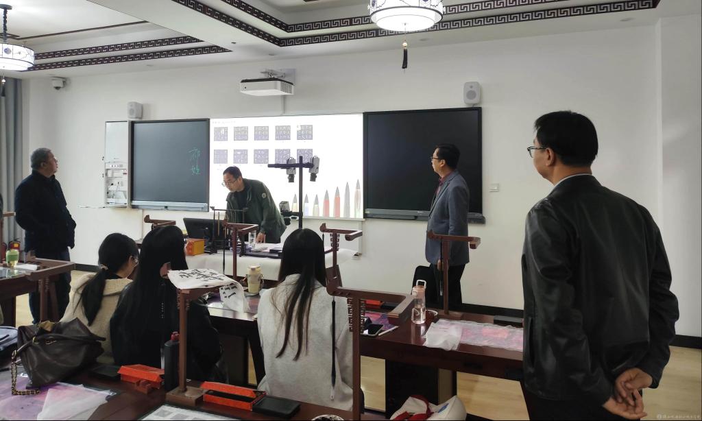 在兰拉成院长的带领下,我校教师还参观了宝鸡文理学院语言文字推广基地、智慧书法教室,国家语言文字推广基地执行主任王应龙对基地的建设情况进行了详细介绍,师范素质教育中心主任赵保胜对智慧书法教室的主要功能进行了演示。
