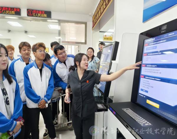 在法院工作人员的引导下,大家依次走进立案大厅、民事审判庭和家事调解室。在现场,法官助理通过现场演示智能庭审系统,讲解“自主诉讼状书写”等便民举措,展现智慧法院建设成果。